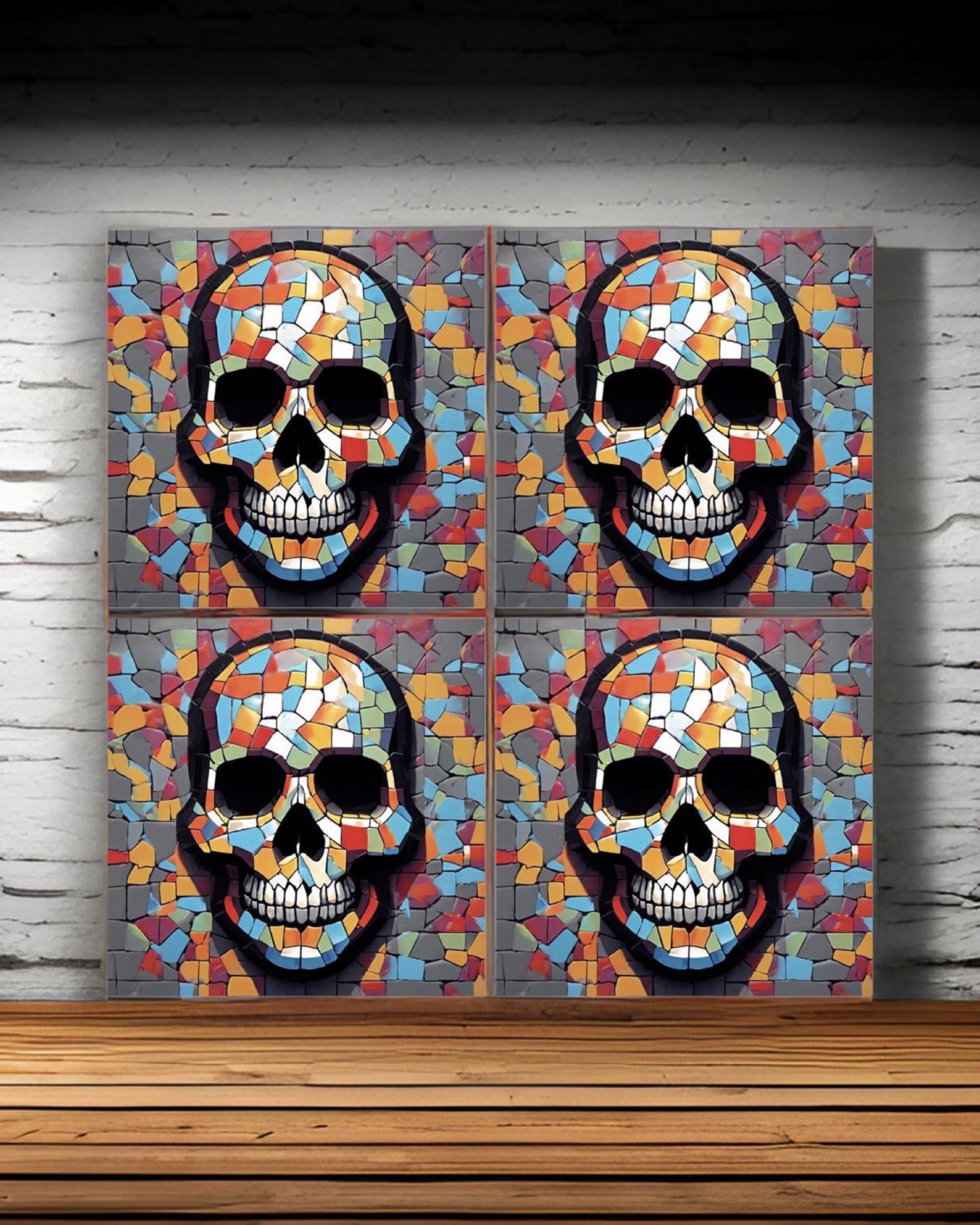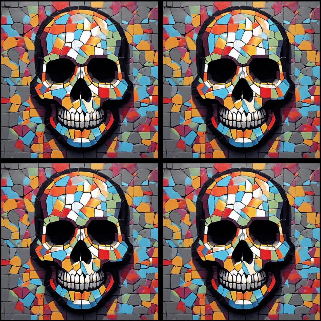 Mosaic Skull 03 • 12”x 12” Epoxy Wall Tiles Tiles (4x Tiles)